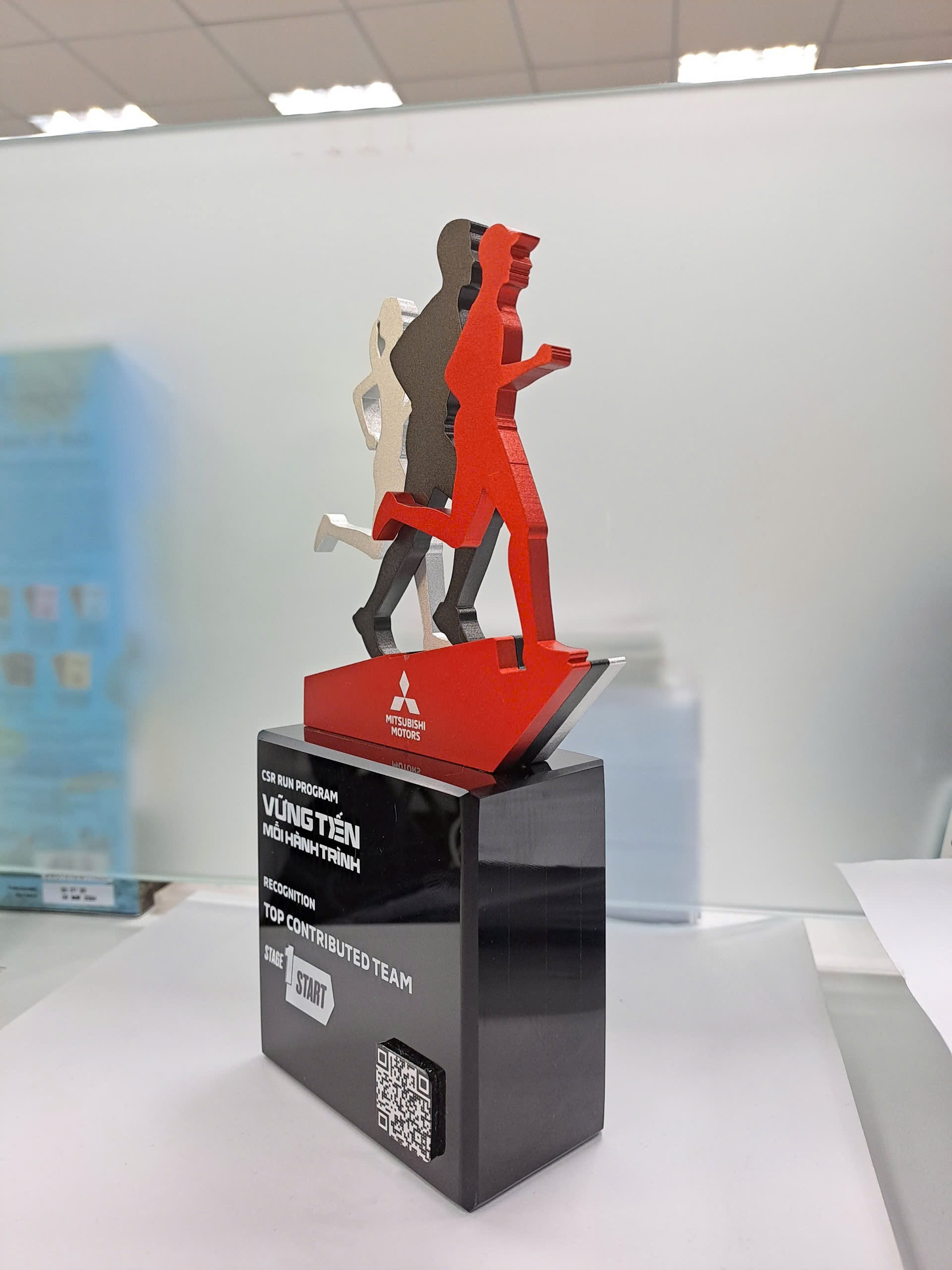- Chiếc cúp được thiết kế riêng cho giải chạy nội bộ của Mitsubishi, không chỉ là phần thưởng danh dự mà còn là biểu tượng tinh thần của sự đoàn kết, gắn kết và khát vọng vươn xa.