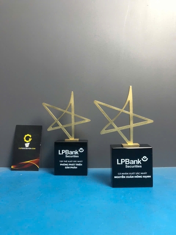 Chiếc cúp ngành ngân hàng LP Bank là sự giao thoa hoàn mỹ giữa nét sắc sảo của kim loại cao cấp và sự tĩnh lặng của pha lê đen huyền bí. Biểu tượng ngôi sao được chế tác từ hợp kim chống oxy hóa, mang đến độ bền bỉ cùng thời gian.