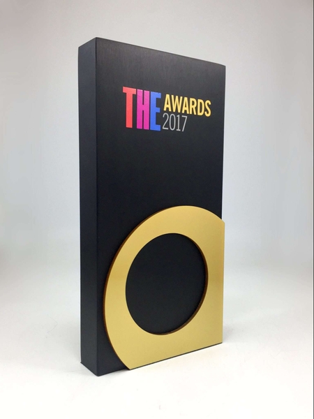 - Mẫu cúp trao giải sáng tạo mang đậm màu sắc thương hiệu của khách hàng.