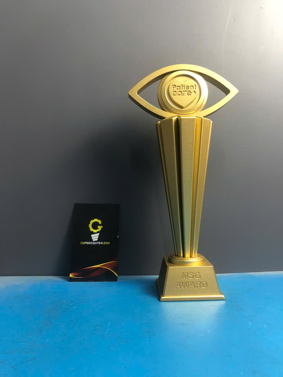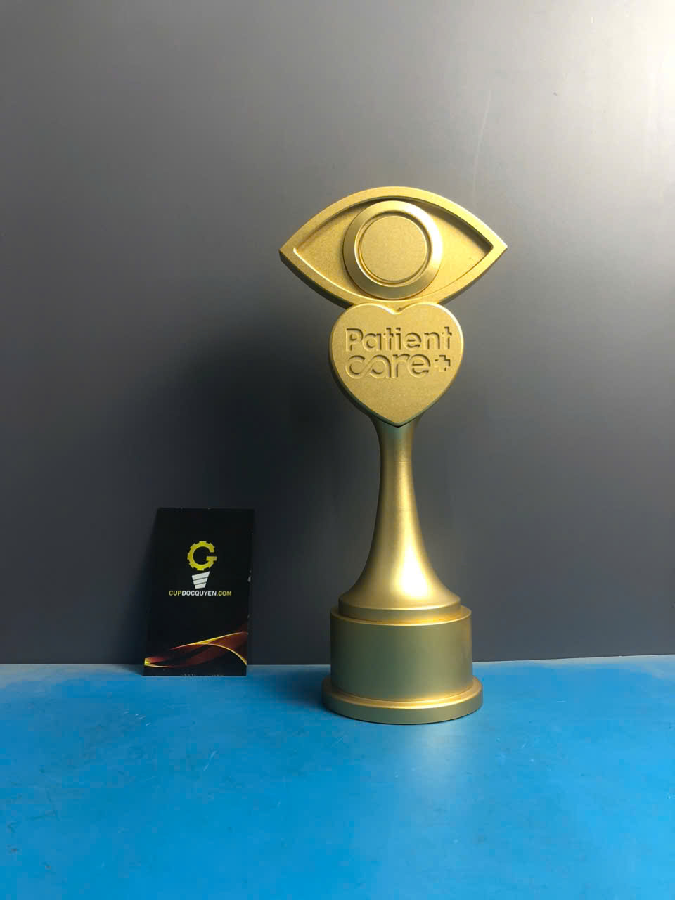 Toàn thân cúp rực rỡ trong lớp mạ vàng nhũ Gold đẳng cấp, gợi liên tưởng đến ánh sáng mặt trời - nguồn sống quý giá nhất mà ngành nhãn khoa luôn nỗ lực gì giữ.