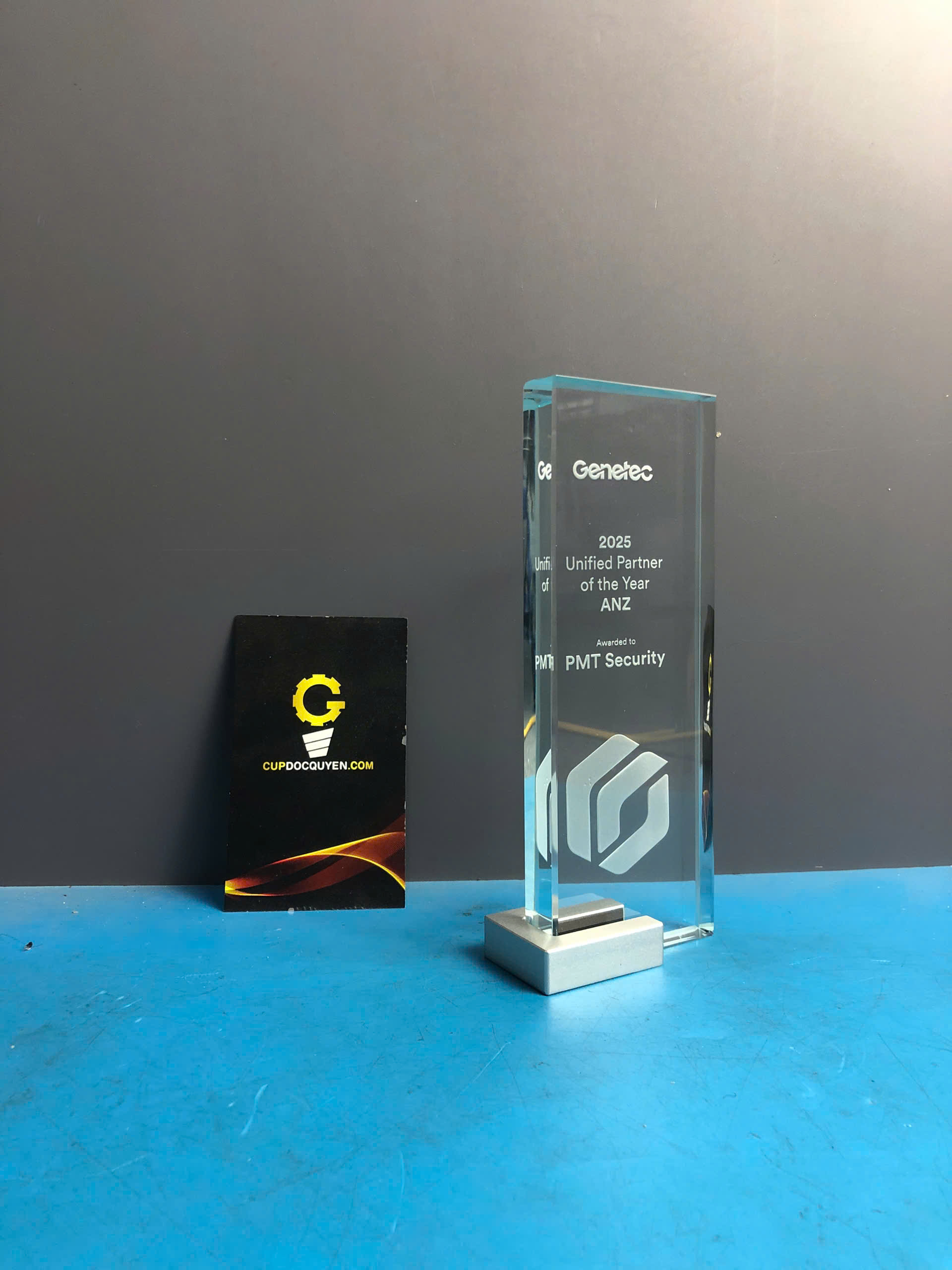 Cúp vinh danh đối tác nguyên khối trong suốt kết hợp bệ đỡ kim loại bất đối xứng đã ra đời mang đến một làn gió hoàn toàn mới cho nghệ thuật vinh danh doanh nghiệp.