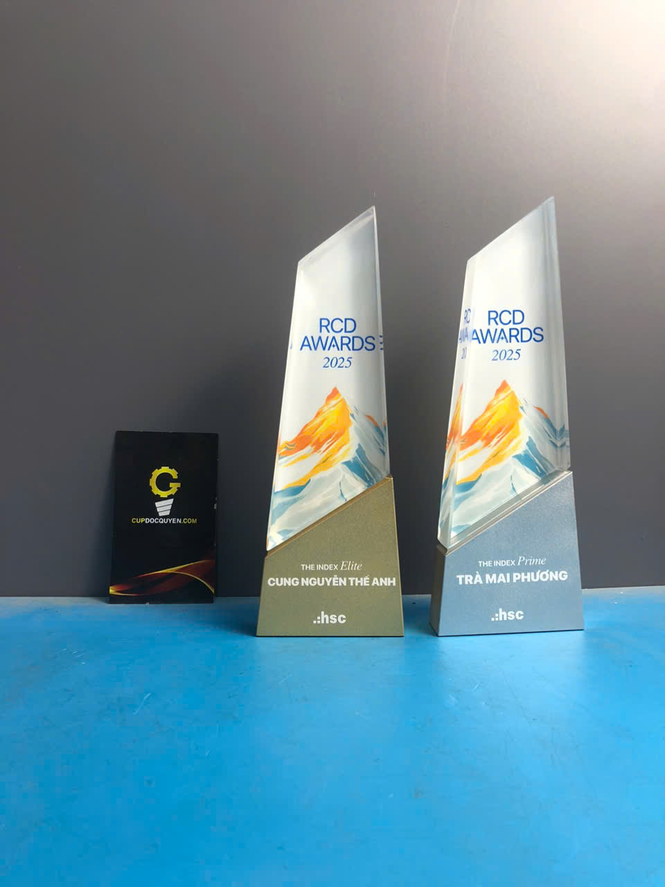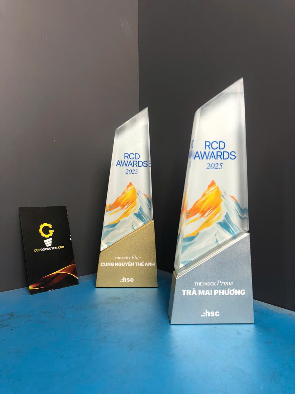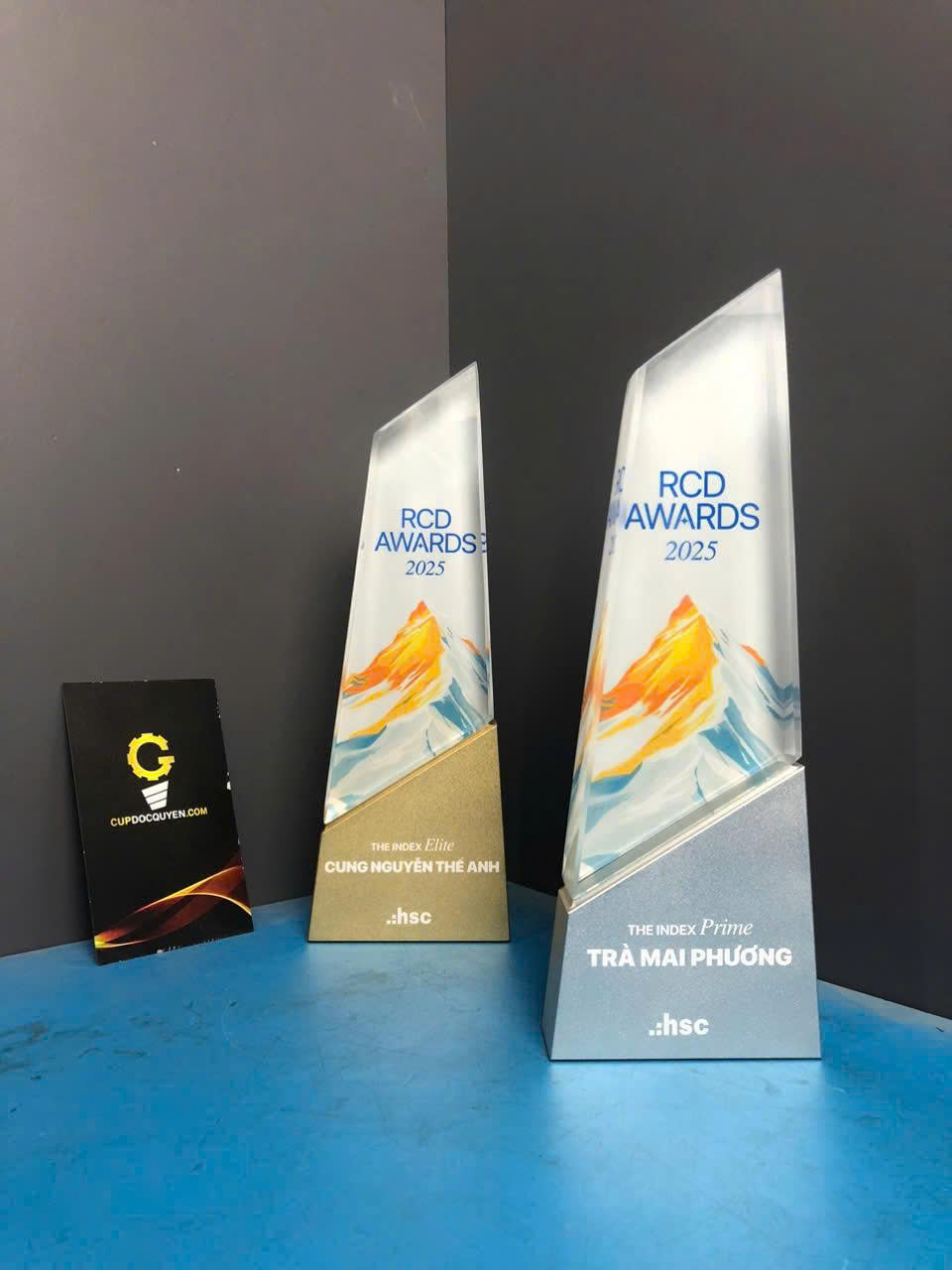 Cúp vinh danh giải thưởng RCD năm 2025 mang hình dáng của một ngọn núi vút cao oai vệ, mang đậm ngôn ngữ thiết kế hiện đại và tinh thần chinh phục không giới hạn.