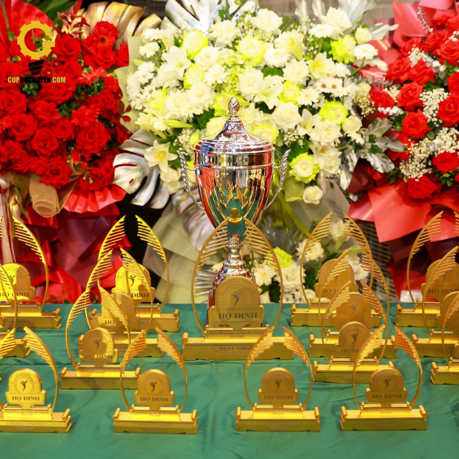 Biểu tượng cho sự đoàn kết và nỗ lực của cả tập thể. Cúp vinh danh cần có thiết kế đẹp, sang trọng, có khắc tên giải đấu, năm và tên đội vô địch. Ví dụ, một chiếc cúp mạ vàng hoặc bạc với đế đá cẩm thạch có thể có giá trị tinh thần rất lớn.